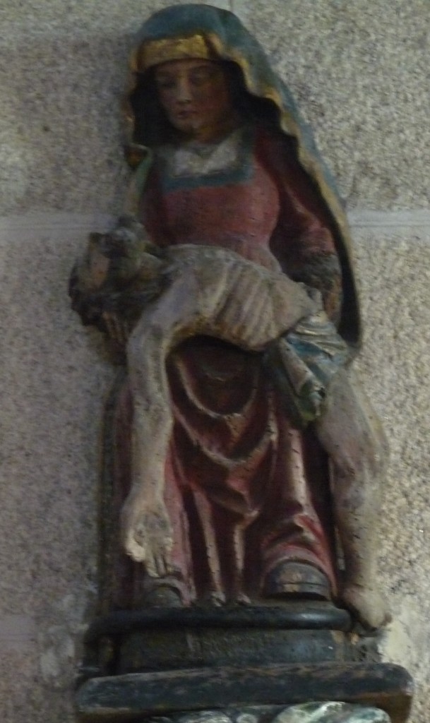 L’église est une pauvre chapelle gothique avec des ex-voto nombreux. Elle renferme de curieuses statues et un Christ en bois, naïvement sculptés et bariolés, œuvres sans doute, des tailleurs de granit de l’île. Le sol est recouvert de grandes dalles funéraires. Au dehors, tout autour de la petite église dont la sacristie porte une inscription rongée laissant lire encore la date 1563, s’étend le cimetière rempli de grandes pierres tombales gravées.