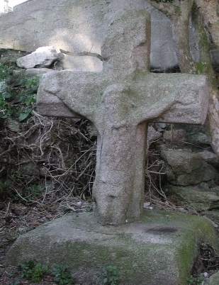 En suivant les rivages de l’anse méridionale, on atteint bientôt, près de Rucornic, l’église Saint Sauveur paroisse de l’île. Elle est sur un ressaut de terrain au pied duquel coule une fontaine… ; coule est un mot peut-être exagéré, à peine un suintement d’eau. Mais la source a dû être plus forte autrefois ; on ne s’expliquerait pas autrement l’élégante clôture de granit, bordée intérieurement de bancs, qui entoure le petit bassin. Au-dessus de la source même, est une niche renfermant la statuette de saint Yves, en faïence. Cette fontaine, dédiée au Saint Sauveur est un lieu de pèlerinage, les mères viennent de fort loin y plonger leurs enfants pendant trois lundis de suite pour les faire marcher.